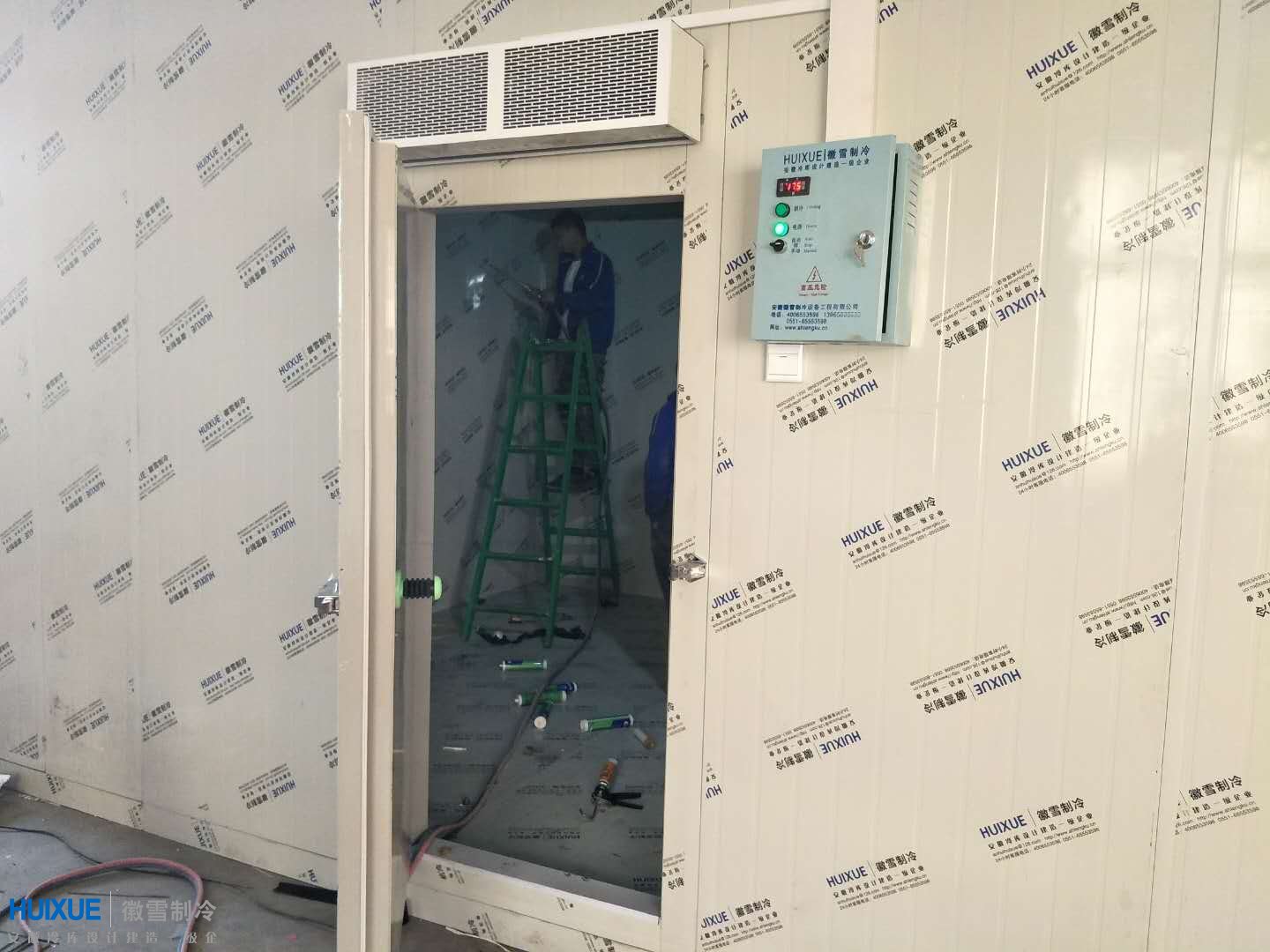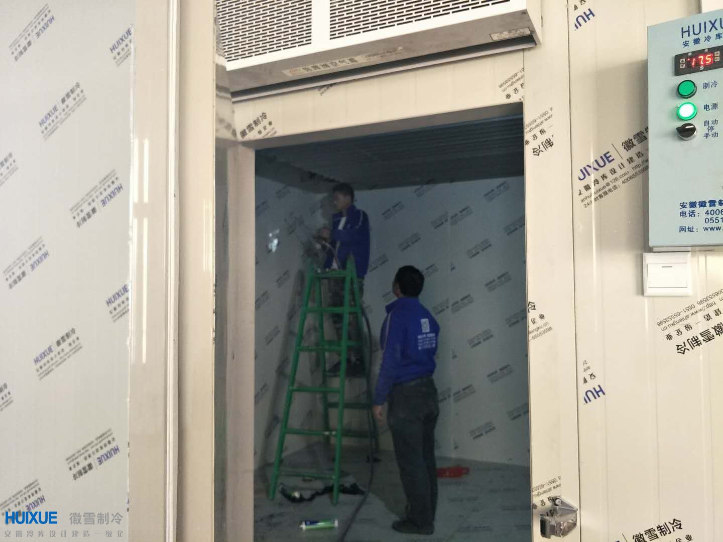 本次為逍遙獅子酒肉店(安徽漢易餐飲管理有限公司)設(shè)計(jì)安裝建造的為座-18度冷凍庫(kù),冷庫(kù)庫(kù)體保溫采用我司自主品"HUIXUE"雙面彩鋼高密度聚氨酯保溫板,制冷設(shè)備采用沈陽谷輪風(fēng)冷制冷機(jī)組。